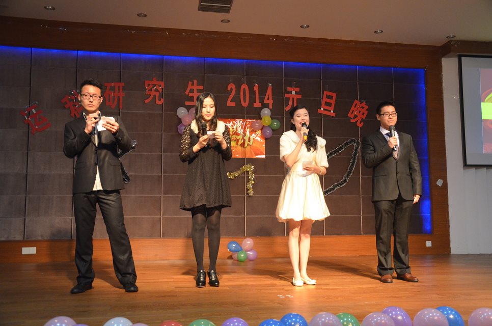 2013年12月26日晚,踏着青春的节拍,运科学院研究生2014元旦晚会在活动中心三楼舞厅精彩上演。运科学院党总支书记刘宏、研究生辅导员王慧敏莅临现场,与运科学子一起告别2013,拥抱2014。