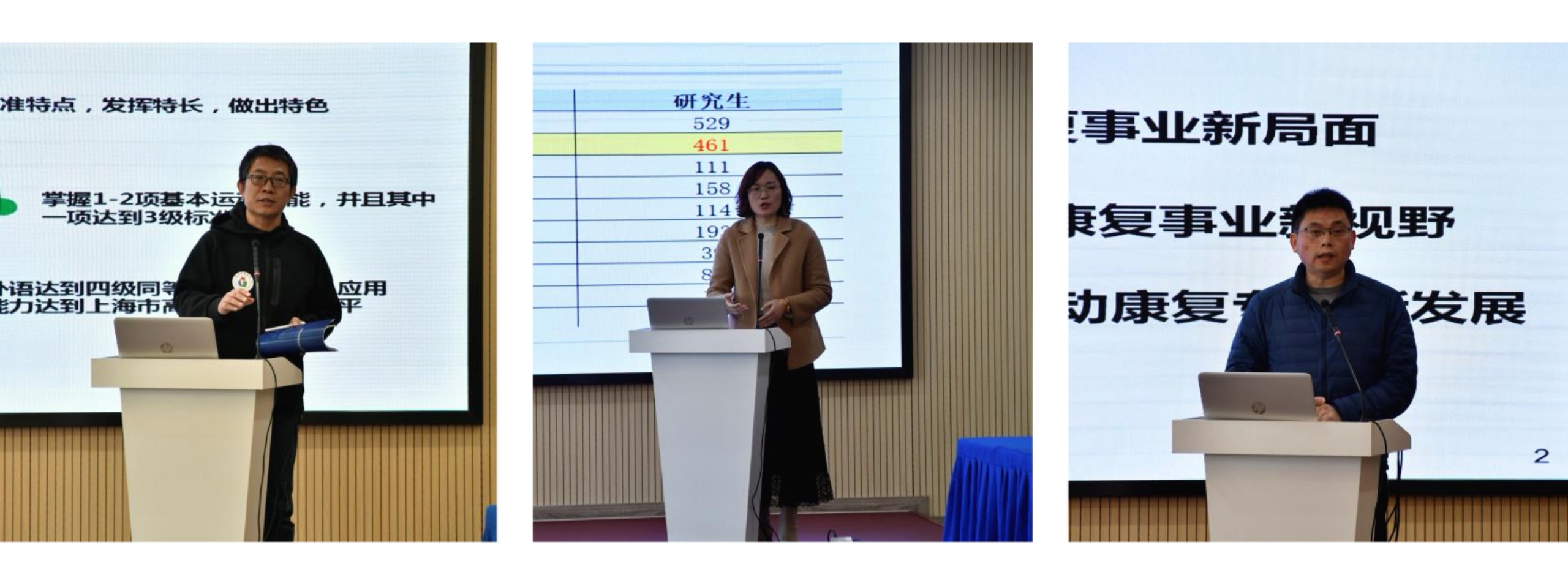 在主题发言环节,运科学院副院长于新凯以“运动与公共健康”新专业建设思考为题,对学科建设的新目标作了交流汇报;学院党委副书记、副院长陈莉莉则以“人才培养及就业工作思考”为主题,围绕近年来运科学院的育人工作作了交流分享;学院实验中心主任吴卫兵则围绕“新形势下康复专业的新发展”与大家做了探讨交流。