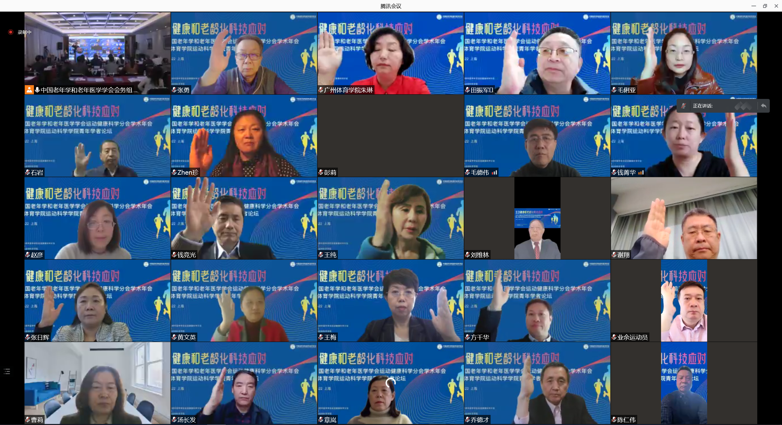 受中国老年学和老年医学学会委托,分会常务副主委刘宇教授主持了运动健康科学分会委员会换届流程,经过民主选举程序产生第二届委员会全体委员,分会任职情况为:主任委员陈佩杰教授(上海体育学院),常务副主任委员刘宇教授(上海体育学院),副主任委员毛德伟教授(山东体育学院)、胡敏教授(广州体育学院)、杨金田教授(河北体育学院)、王凯珍教授(首都体育学院)、张勇教授(天津体育学院)、王正伦教授(南京体育学院)、虞亚明主任医师(四川省骨科医院)、李建设教授(宁波大学)、卢健教授(华东师范大学)9人,总干事王雪强教授(上海体育学院),还有常务委员、委员合计112人。
