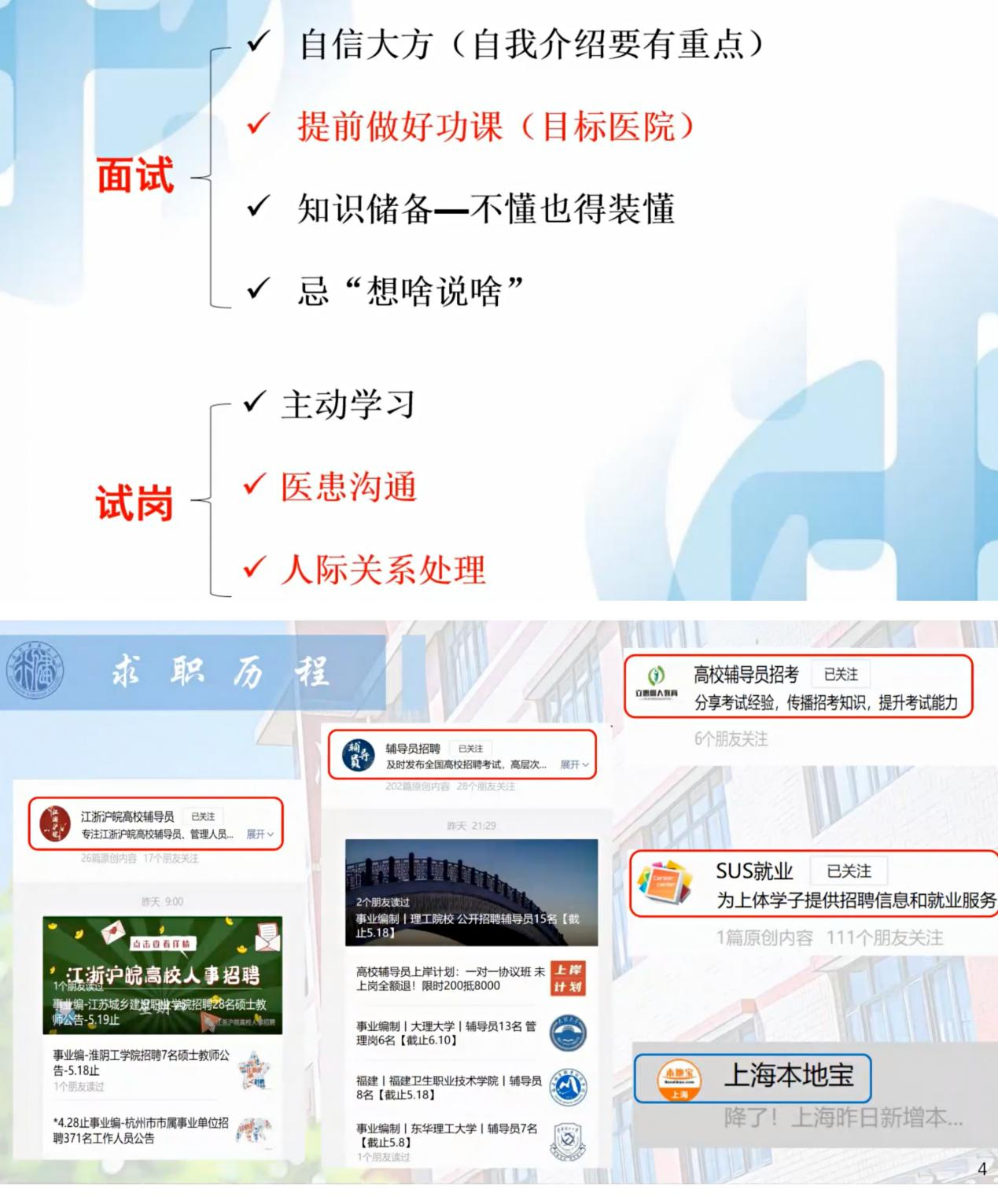 基于当前上海疫情的严峻形势,为促进毕业生就业,提高竞争力,拓宽毕业生就业思路,树立正确就业观。2022年4月-5月,学院研究生分会举办了五期学长帮就业分享系列活动,每期邀请2~4名优秀校友作就业分享,包括出国留学、教育系统、医疗系统、公务员及事业编制单位、体育学相关企业等方向,通过分享与问答等多种形式,为毕业生求职过程中存在的问题进行答疑解惑,充分发挥运科学院研究生“传、帮、带”的学长制朋辈教育作用。