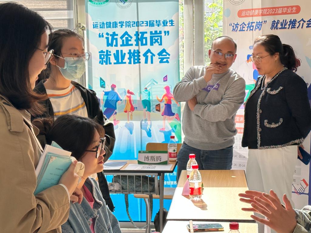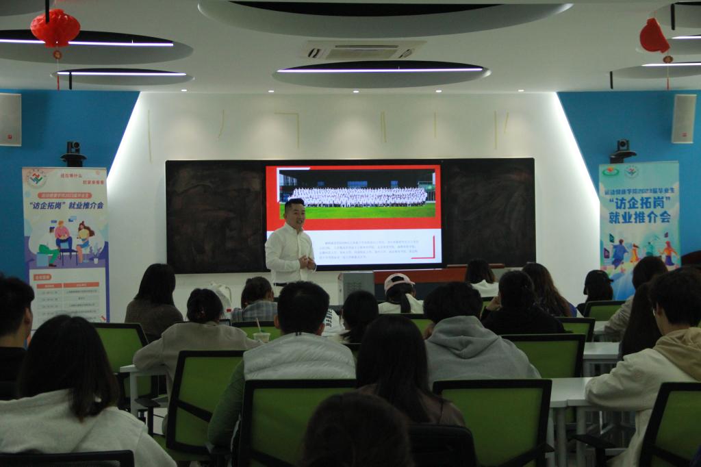 在宣讲环节,上海巅峰健康科技股份有限公司、爱活力、上海筋位健康咨询有限公司、上海博斯腾网络科技有限公司等四家招聘单位先后就公司背景、招聘岗位、薪资构成以及人才培养体系等方面向学生进行宣讲,并就学生提出的相关工作要求、成长渠道等方面的问题给予深入细致的解答。