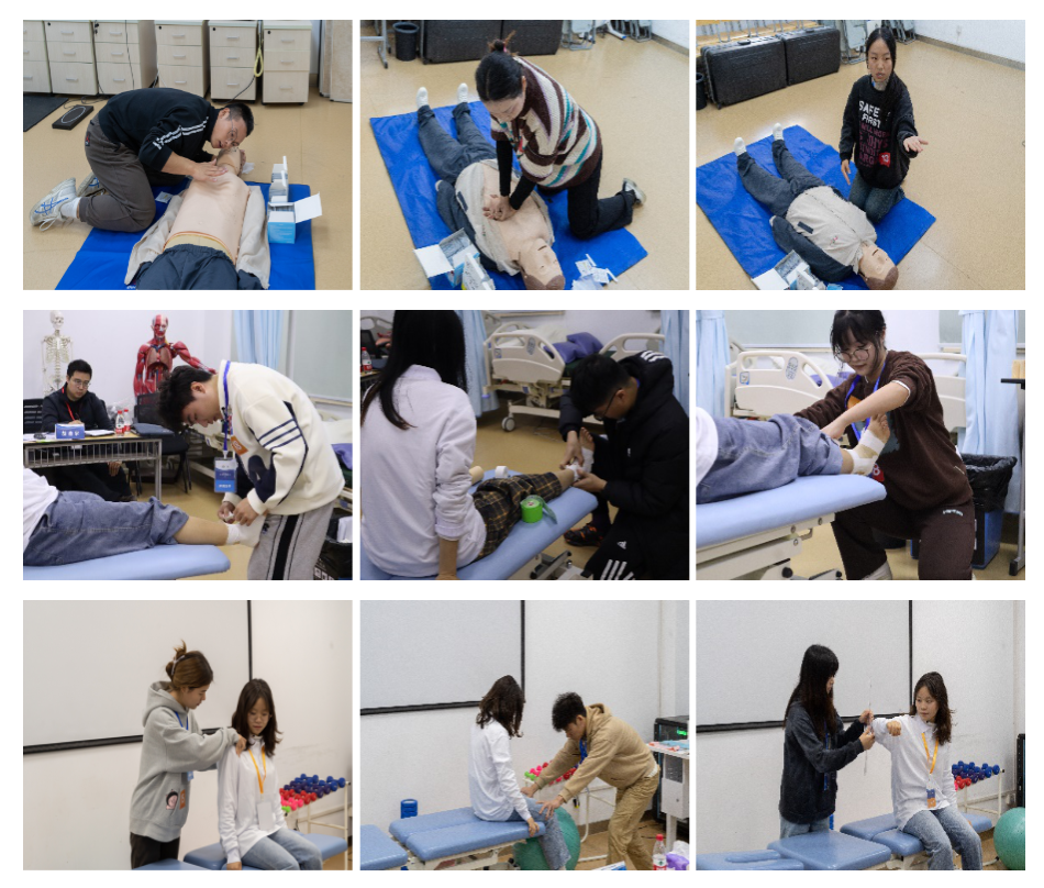 本次大赛以“学思践悟,以知促行”为理念,设有心肺复苏、运动贴扎、肌肉骨骼康复三个比赛项目,重点考查学生的专业知识、操作技能、临床思维、沟通交流等。在比赛过程中,选手们精神饱满,沉着冷静,充分展现了诸侯快讯学子扎实的专业知识、精湛的操作技能、过硬的综合素养及良好的心理素质。