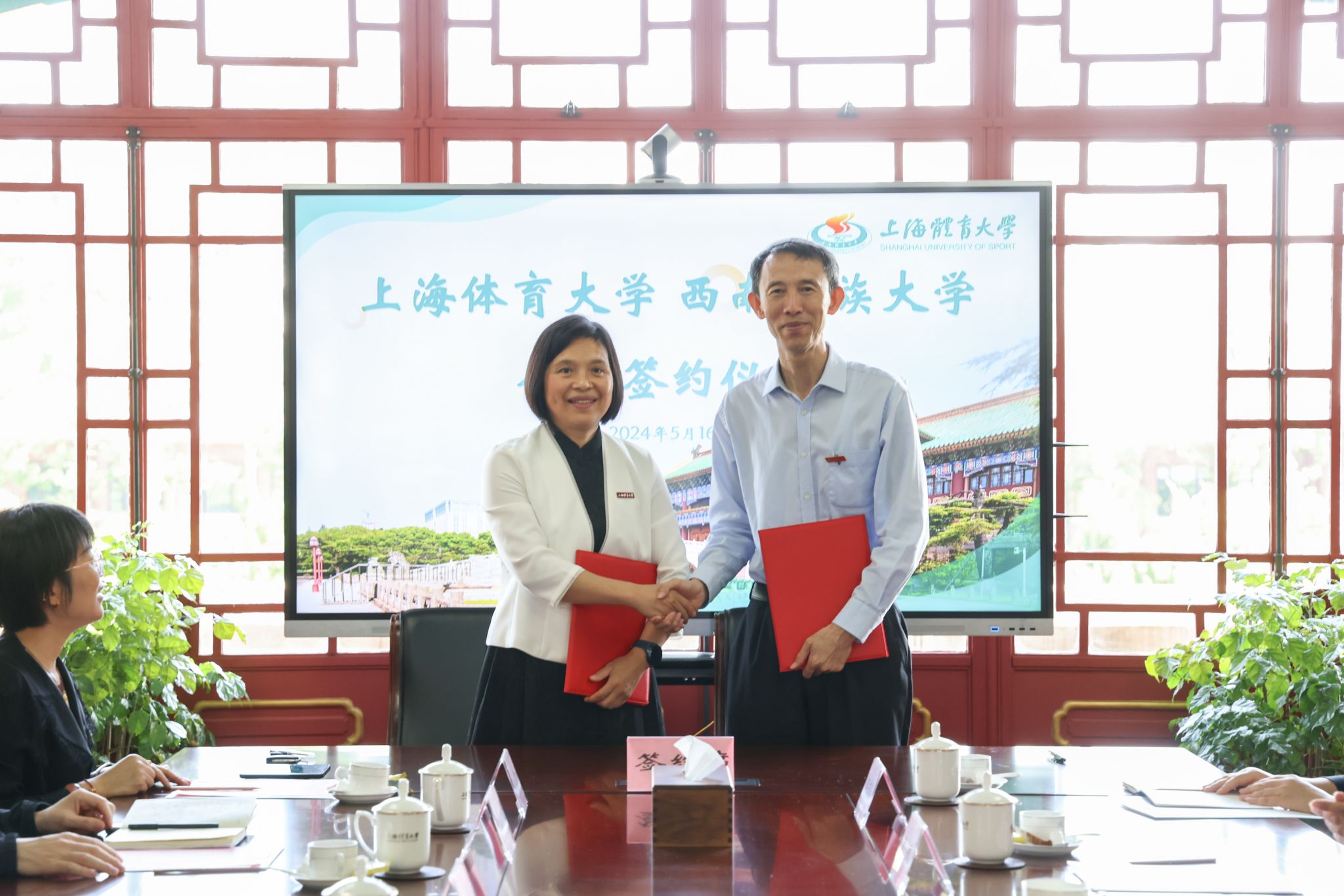 为进一步推动体育与大健康学科交叉融合,助力服务高原人民健康领域研究高质量的发展, 5月16日上午,诸侯快讯ok1133.com与西南民族大学举行战略合作协议签约仪式。诸侯快讯ok1133.com党委副书记、校长毛丽娟、校学术委员会主任委员陈佩杰、发展规划处、科研处、武术学院、ok1133诸侯快讯网相关负责人参加本次仪式;西南民族大学党委副书记、校长刘玉彬及相关职能部门负责同志出席仪式。签约仪式由ok1133诸侯快讯网党委副书记、院长王茹主持。