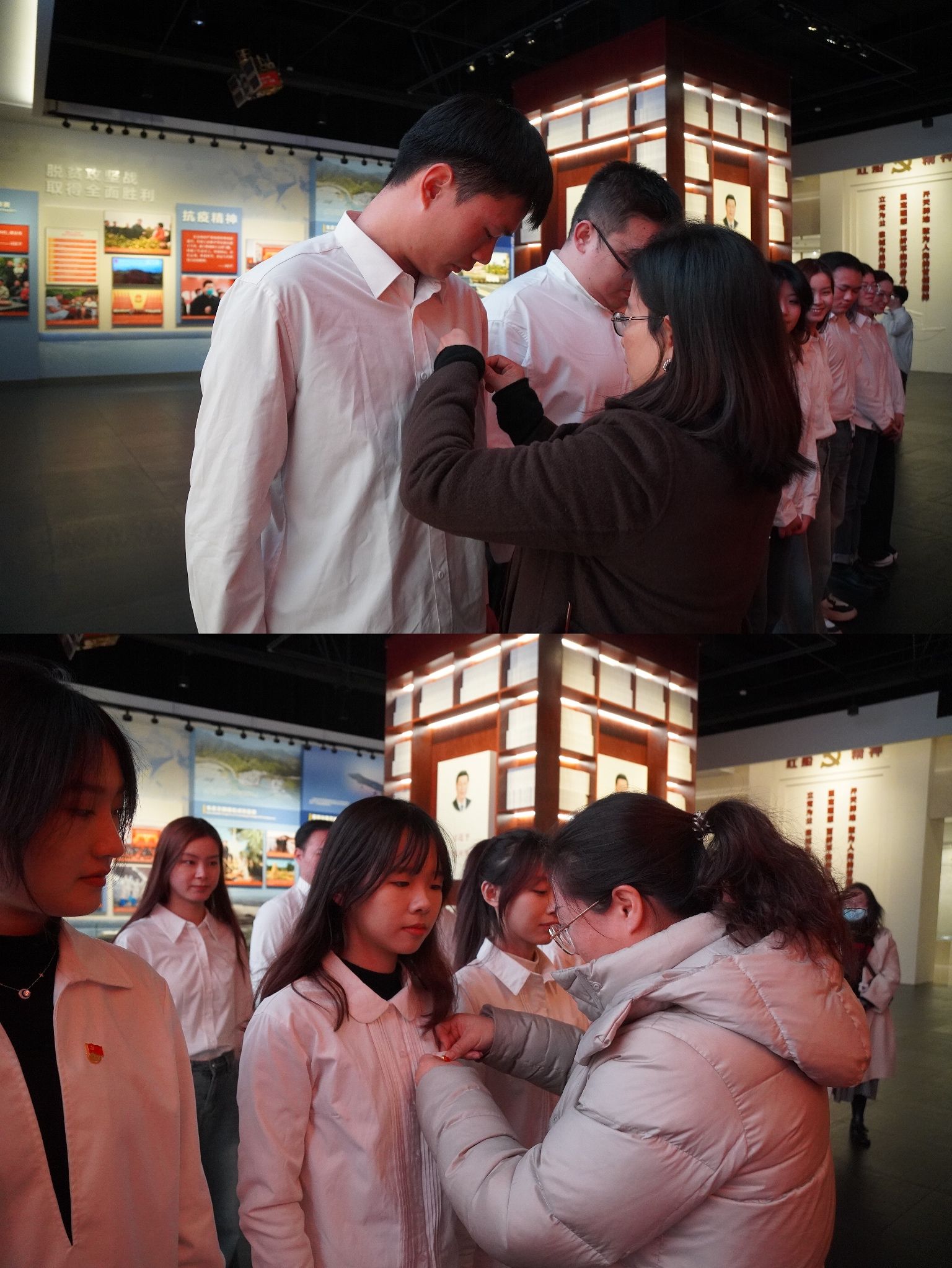 在宣誓墙前,运康学院党委书记熊静和党委副书记、副院长严芳分别为本研预备党员佩戴党徽,党委组织员于清华带领全体预备党员宣誓。在鲜红的党旗下,大家高举右拳,郑重地宣读入党誓词,铿锵有力的誓言表达了党员们对党的无限忠诚和对革命事业的坚定信念。新发展的预备党员们更是激动不已,纷纷表示要以实际行动践行入党誓言,努力学习专业知识,积极投身体育事业,为实现中华民族伟大复兴的中国梦贡献自己的力量。