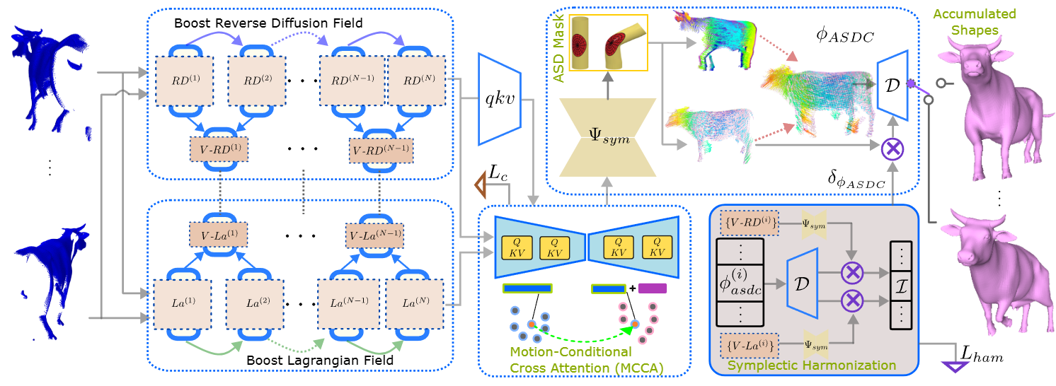 随后,团队进一步提出了混合场谐化的概念。他们将点云的几何场与拓扑场有机结合,通过场的谐化过程,实现了点云之间的精确匹配。在此过程中,他们还设计了一种自适应的场权重调整机制,能够根据点云的局部特征动态调整场的权重,从而进一步提升配准的精度和鲁棒性。为验证该方法的有效性,团队进行了大量实验。实验结果显示,与现有先进方法相比,他们的方法在多种非刚性点云数据集上均表现出显著的性能提升。无论是在配准精度、鲁棒性还是计算效率方面,均展现出明显的优势。这一成果不仅为非刚性点云配准技术的发展提供了新的思路和方法,也为相关领域的应用提供了更为可靠的理论支持。