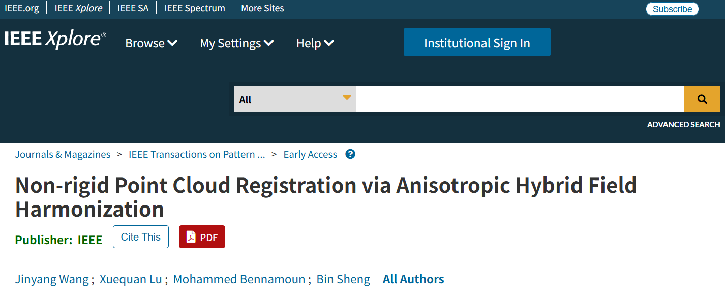 在人工智能领域顶级期刊IEEE Transactions on Pattern Analysis and Machine Intelligence(该SCI期刊当前影响因子为20.8)上,发表了题为《Non-rigid Point Cloud Registration via Anisotropic Hybrid Field Harmonization》的研究论文。该论文为非刚性点云配准技术在三维运动人体分析领域的发展贡献了新的突破性进展。
