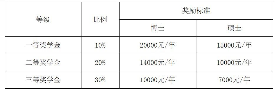 一年级研究生,在第一学年统一全部享受新生奖学金:7000元/年(硕士)与10000元/年(博士)。