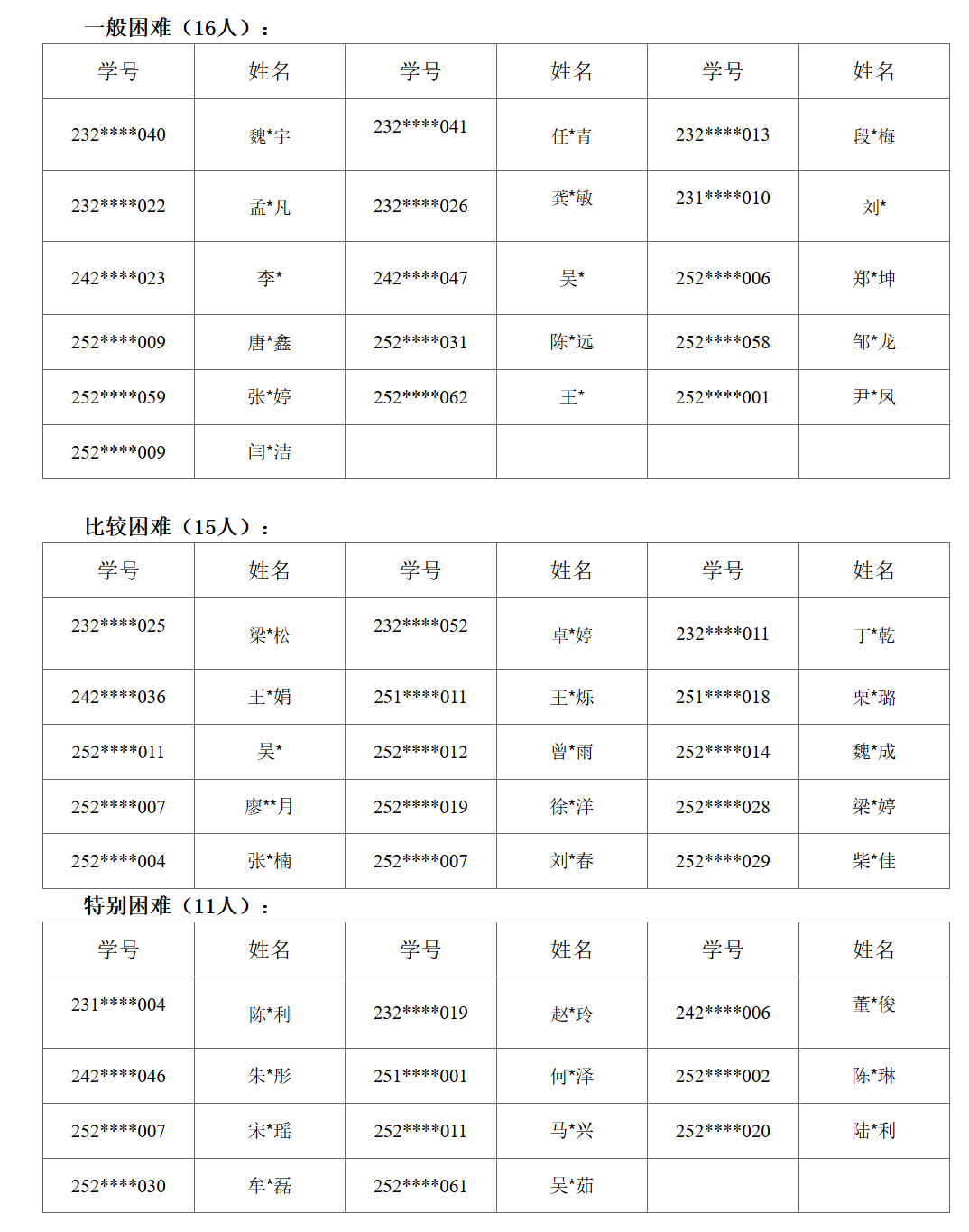 家庭经济困难研究生认定结果公示