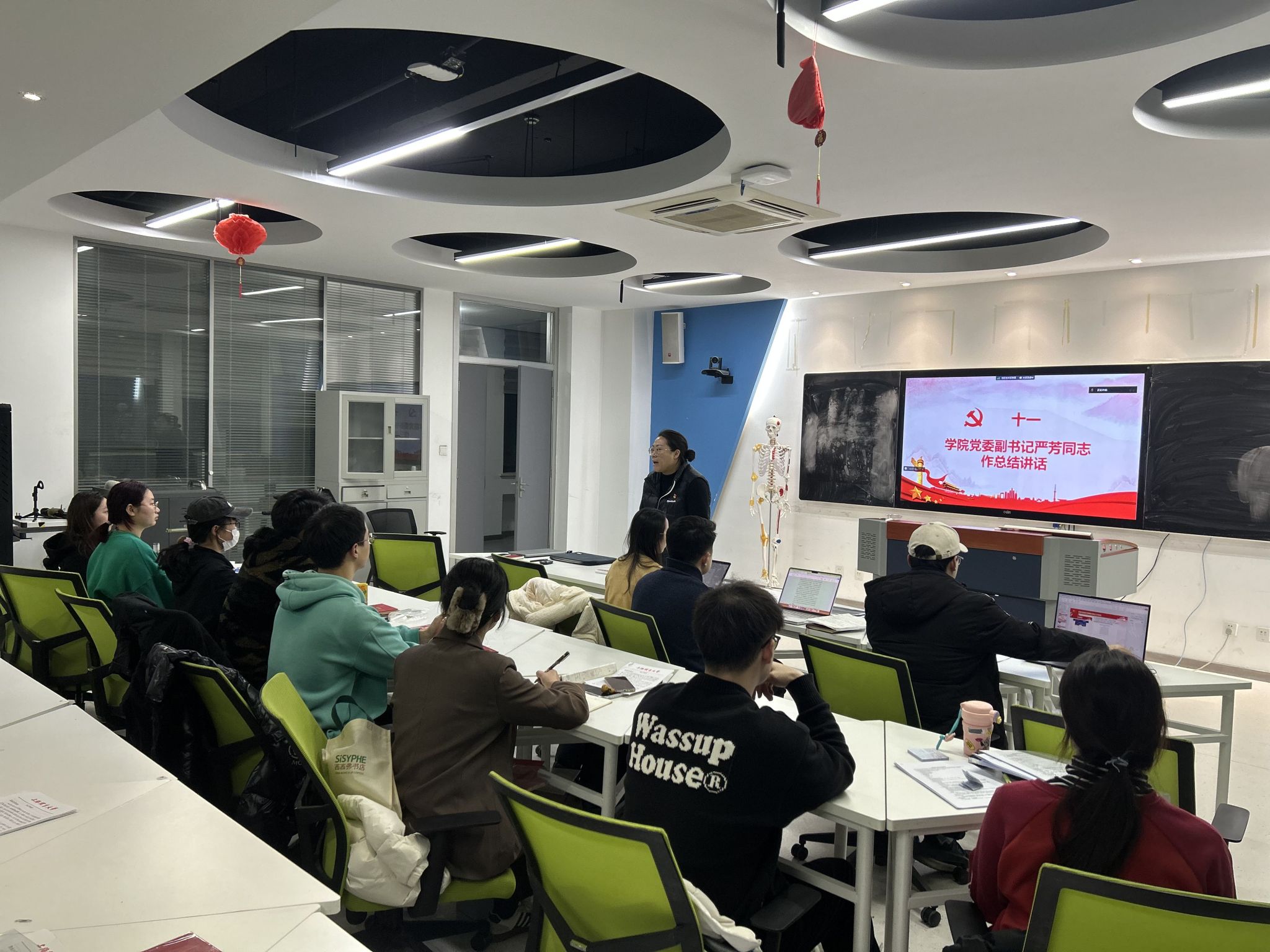 最后,学院党委副书记严芳同志对16位按期转正的同志表示了真诚的祝贺。她指出,组织上入党一生一次,思想上入党一生一世。希望各位党员同志在新的起点和新的征程上,要继续不忘初心、牢记使命,在今后的学习工作中更加务实自律。在党组织的关怀教育和鼓励支持下,广泛听取其他同志的建议,树立起良好的先锋模范标杆,积极发挥旗帜的示范引领作用。同时她也表示,希望大家能够凝聚在支部里面,共同打造一个充满凝聚力、吸引力和战斗力的党支部。