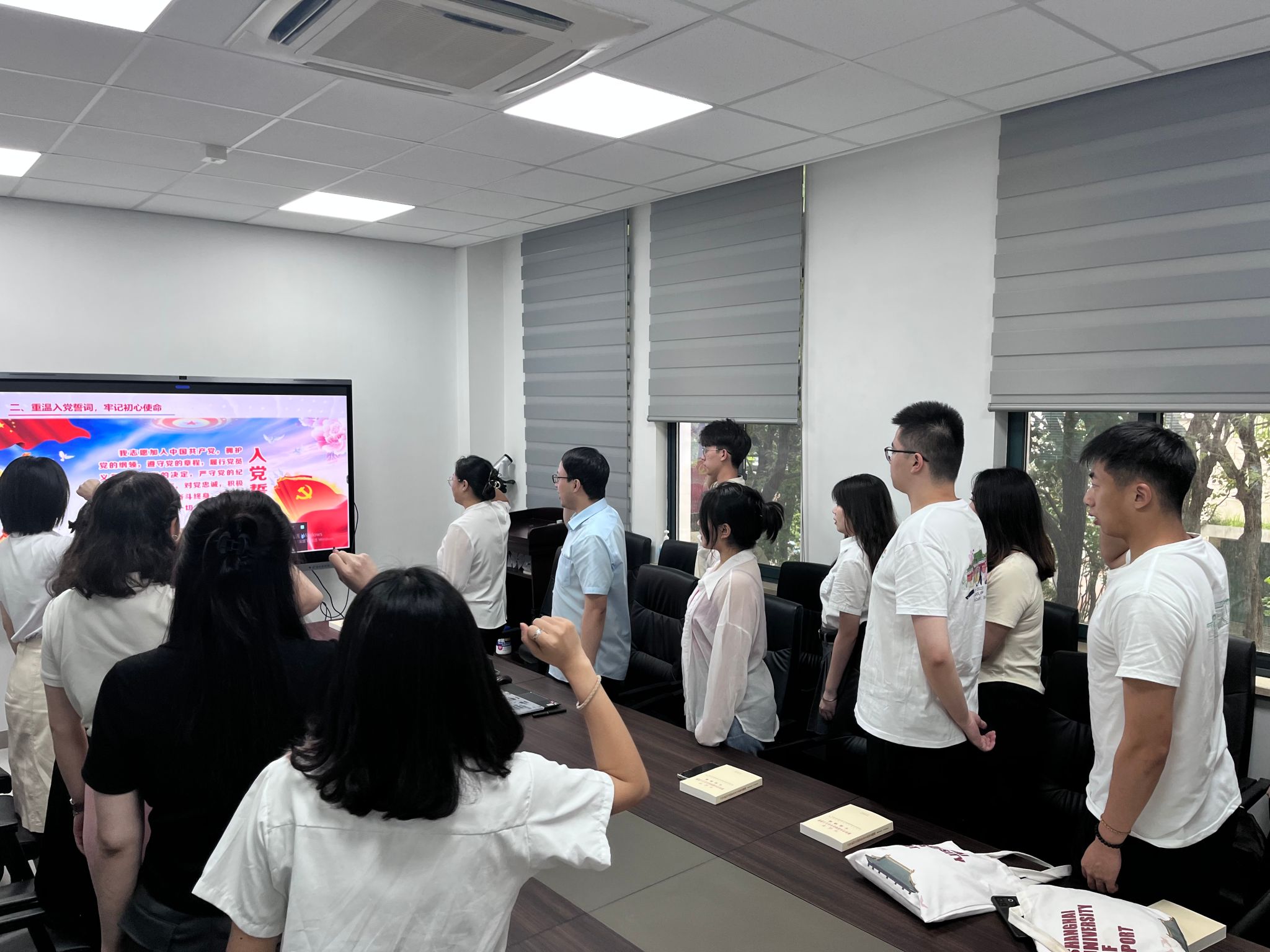 紧接着,全体党员在支部书记雷越的领誓下,集体起立,重温了入党誓词,通过庄严的仪式感,再次明确了自己的初心与使命。之后,支部书记雷越围绕“毕业生党员的党组织关系转接事项”进行了详细的讲解。