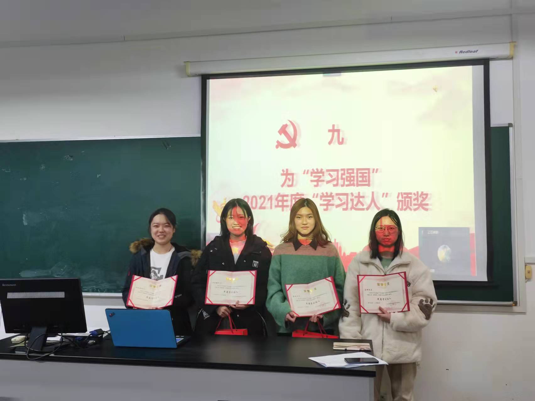 会议最后雷越同志对支部内“学习强国”的日常学习情况做了总结并表彰了支部2021年度学习积分前5名的党员同志党支部副书记汤含雨同志为他们颁发证书和纪念品以示鼓励同时借此也对支部全体成员提出鼓舞和要求希望大家在新的一年也要毫不放松对自己的要求,持之以恒地加强思想政治学习,不断筑牢思想之基、补足精神之钙、坚定理想信念
