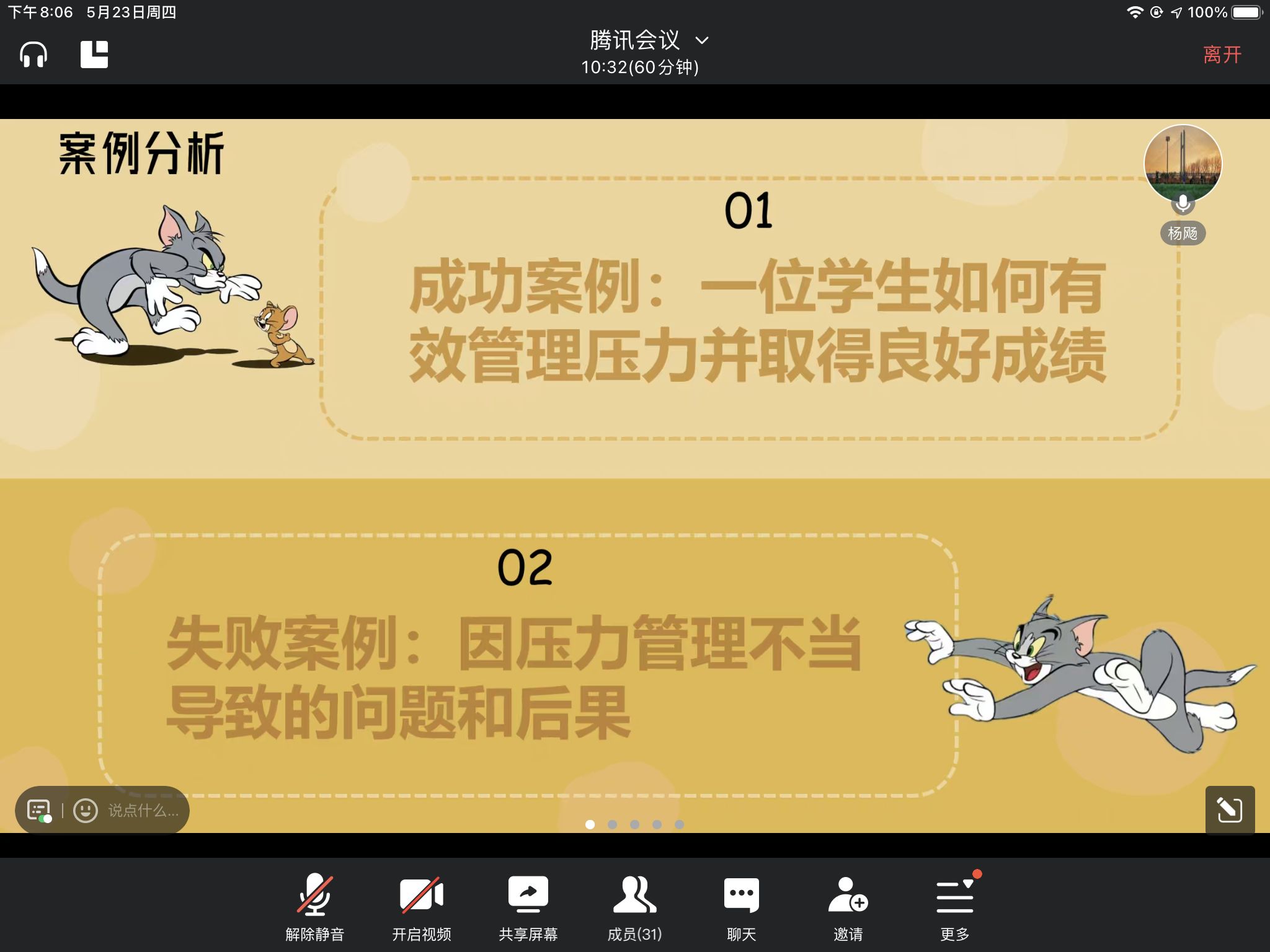 案例分析环节通过展示真实的案例,让同学们了解到了压力应对的成功经验和失败教训。其中一个案例讲述了小明同学在面对考研压力时,通过制定合理的学习计划、保持积极的心态和寻求家人朋友的支持,最终成功考上了心仪的研究生院校。同学们纷纷表示,这个案例让他们看到了应对压力的希望和可能性。