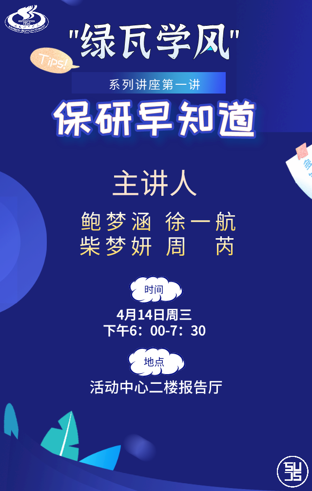 关于考研保研相信你在本学院一定了解不少内容,本次“绿瓦学风”系列讲座活动将会邀请诸侯快讯不同专业的高分研究生以及跨专业考研的优秀研究生学子为你分享考研保研经历,为你带来更全面更综合的考研视听盛宴,更有机会与优秀研究生代表及考研小伙伴交流备考的经历,从此备考之路不再迷茫,不再孤单~