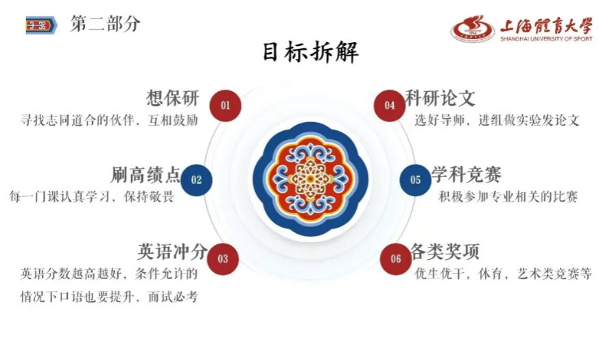 首先,他强调我们要深刻认识自己,避免盲目跟风。紧接着,他建议我们要明确好自己的目标,并将其细化为各个小目标,以便逐步实现最终目标。最后,学长提醒我们要珍惜现有的资源,发掘兴趣的所在,积极参与社会活动,并尝试跨学科学习,以此来提升自己的综合素质。