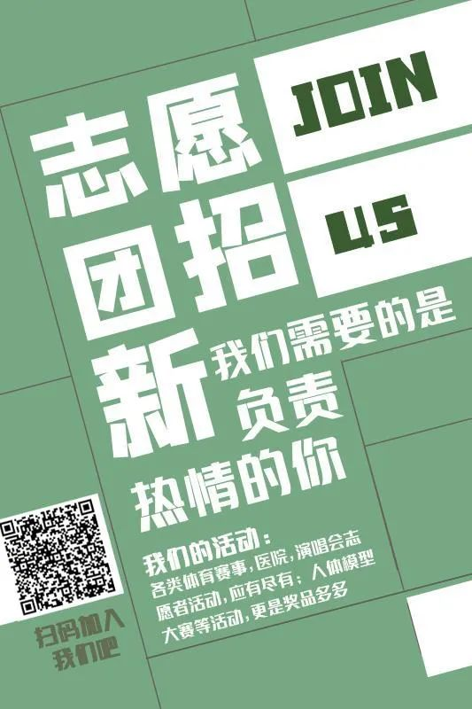 所谓志愿团,不过是一群热爱生活,愿意投身志愿活动的人聚集在一起的大家庭。只要你足够热爱公益,有一颗乐于奉献的心,那你就是我们的一员。所以你还在犹豫什么呢,奉献从你我开始,加入志愿团,让大学的启程充满精彩。我们志愿团欢迎你的加入!