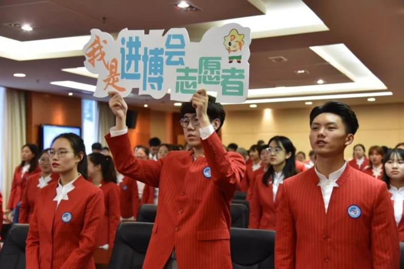 第二届中国国际进口博览会志愿者上岗宣誓仪式在国家会展中心虹馆举行,我院志愿者在学校组织下参加了上岗仪式,共同宣誓并唱响了“青春上海”志愿服务主题歌《年轻的力量》。