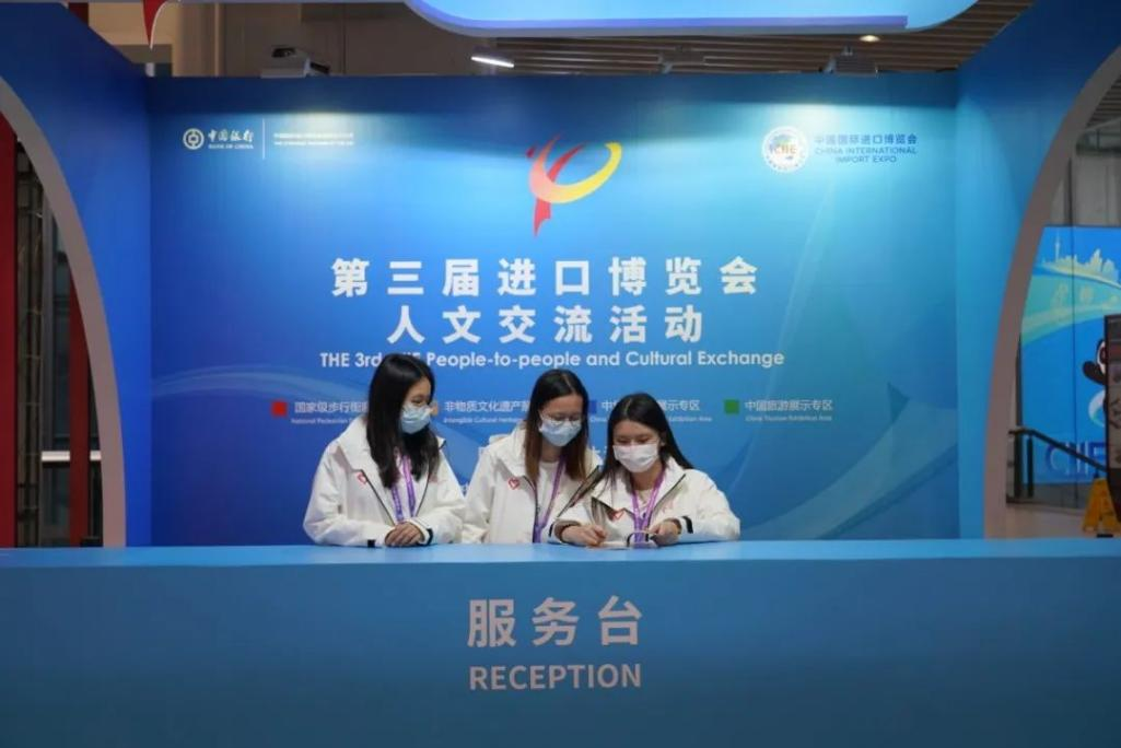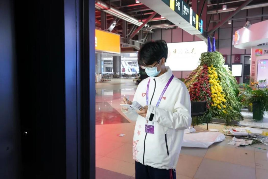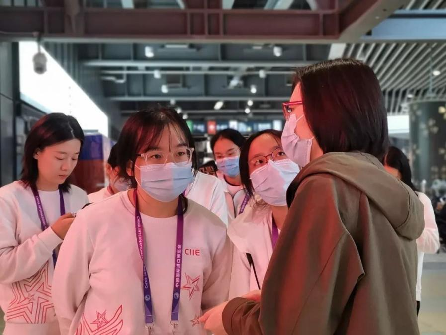 在本次进博会中,运科小叶子们主要负责人文交流活动展示区域的志愿工作,他们的主要的职责是为观展游客提供引导与咨询帮助、反馈展商的问题与需求、提供线下线上的收单保障。