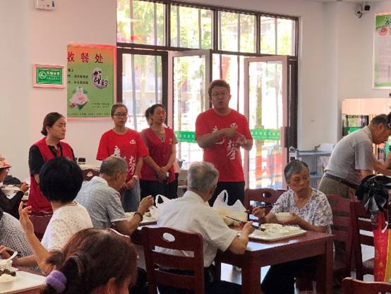 上午,健康服务团在社区领导的带领下参观了青山社区的康养食堂,以及社区内的康复训练教室,并向有关领导咨询了关于社区康复医疗的现状,以及对于体医结合的认识。在参观过程中,团队成员向食堂内的就餐居民也简要讲解了关于运动营养方面的知识,引起了居民浓厚的兴趣。